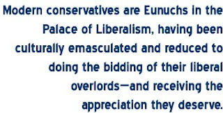Modern conservatives are Eunuchs in the Palace of Liberalism, having been culturally emasculated and reduced to doing the bidding of their liberal overlords, and are receiving the appreciation they deserve.